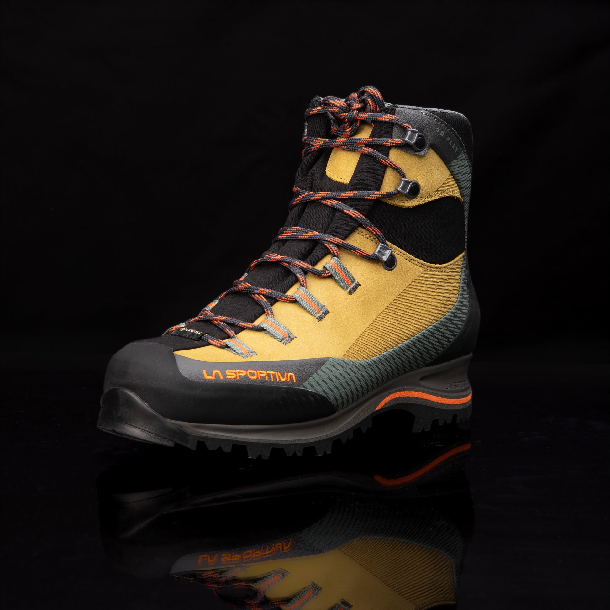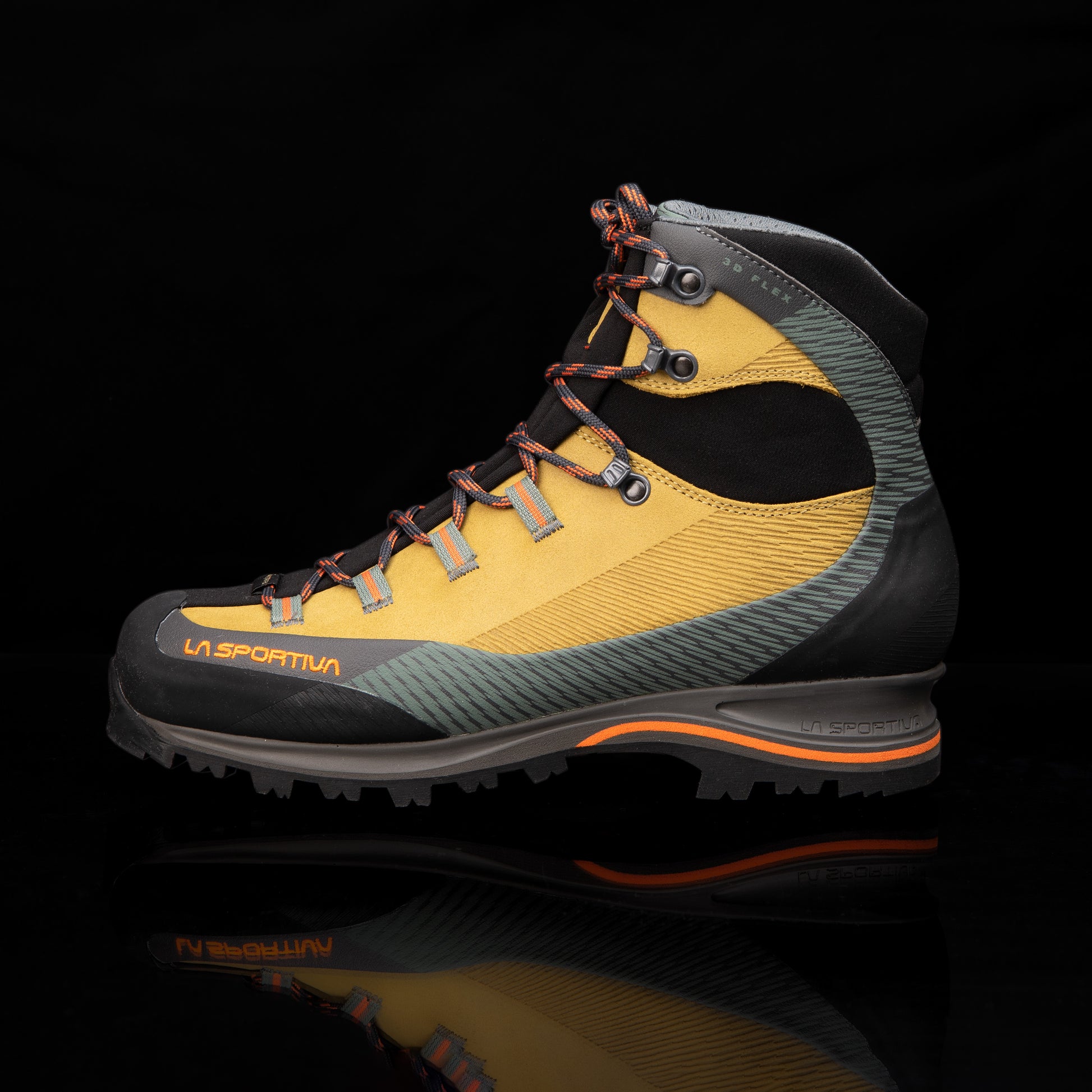 - Түрийний зааг хэсэгт байрлах 3D Flex System уян зөөлөн оруулга нь шагайг хамгаалахаас гадна тэгш бус гадаргууд гишгэхэд шагайны үеийн хөдөлгөөнийг 360 градус дагаж хөдлөх бөгөөд ингэснээр бүтэн улаар гишгэж ачааллыг жигд хуваарилах, мөн холголтоос сэргийлэх үүрэгтэй